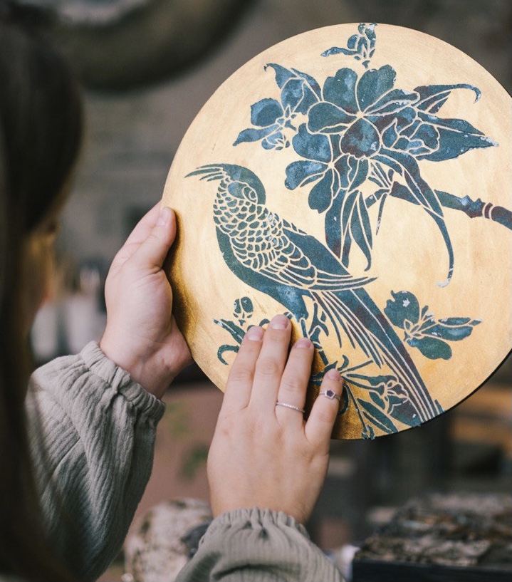 Однослойный трафарет с райской птицей для создания яркой фактурной цветной росписи или фактуры за один шаг.
